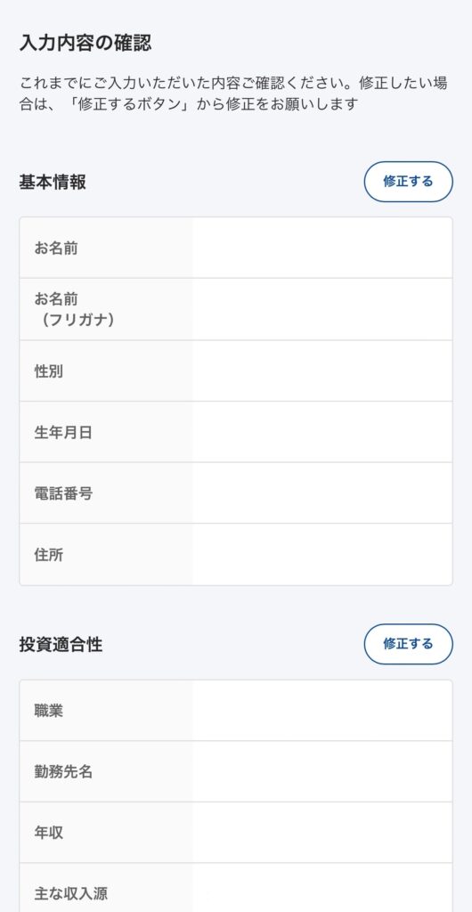 質問に回答し、全て回答したら「口座情報の入力へ進む」