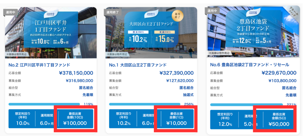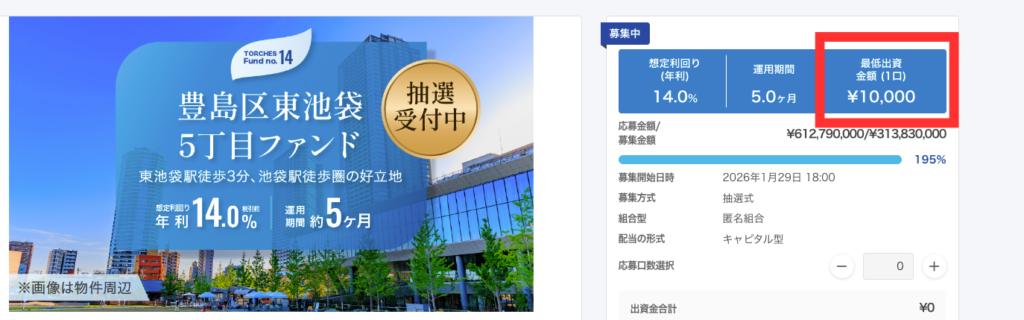トーチーズでは1口1万円から投資ができる案件もあるよ💰